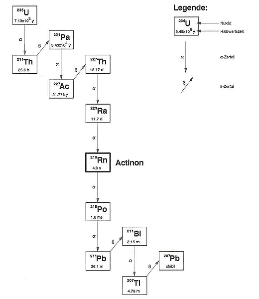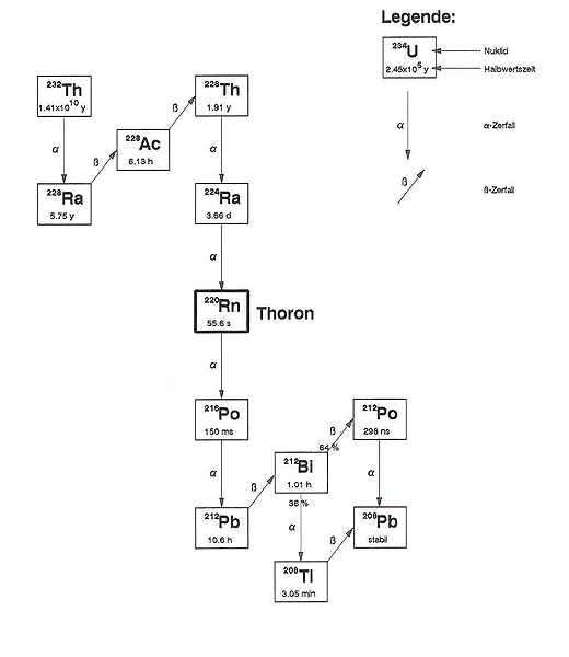 Wenn von Radon die Rede ist, so wird in der Regel das Nuklid 222Rn gemeint, welches der Uran-238-Reihe angehört. Uran zerfällt über Thorium und Radium zu Radon.